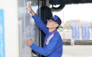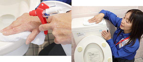 お客様に気持ちよくご使用いただけるように常にトイレの清潔さに気を配っております。2時間毎、チェックシートによる徹底チェック。