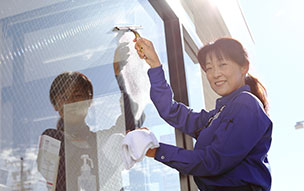 建物の窓ガラスは毎日清掃。